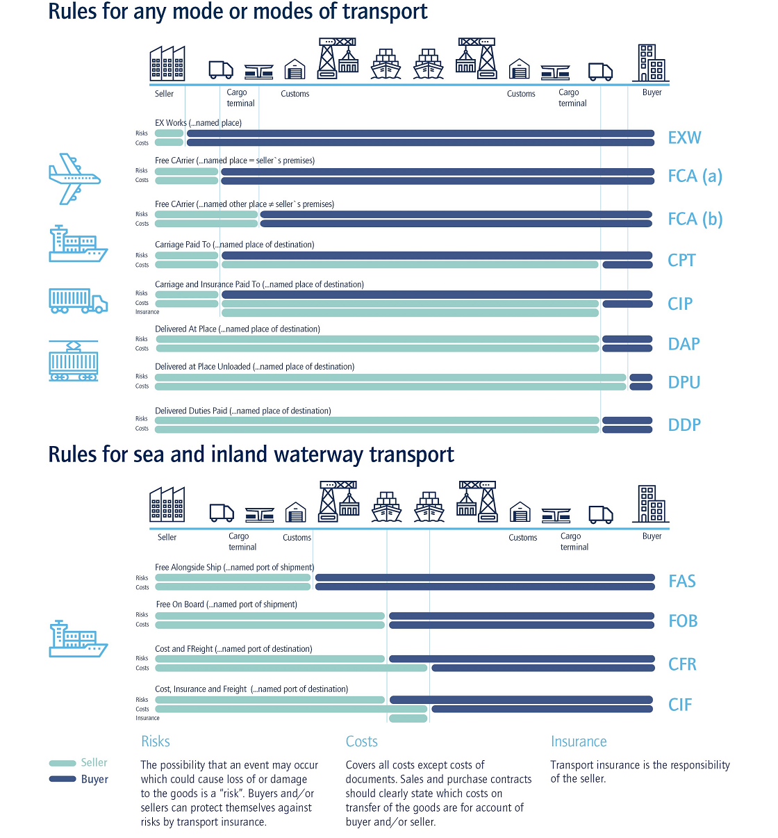 The Incoterms® rules feature a series of three-letter trade terms which all have very precise meanings for the sale of goods around the world.